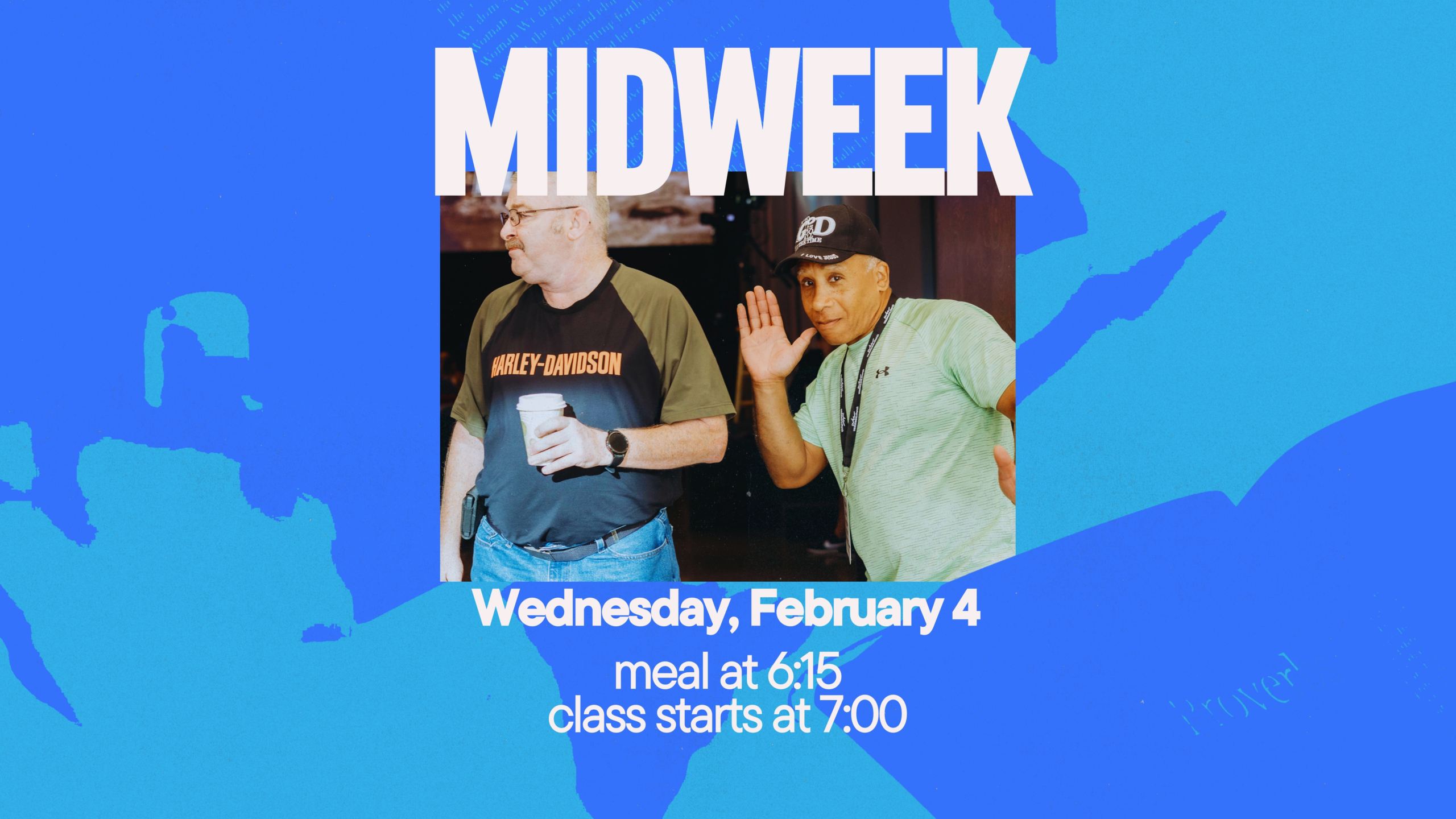 Midweek is an intentional pause in the middle of our busy weeks. It is a space to slow down, gather around tables, and go deeper together. This is where faith moves from rows to conversations, where Scripture is opened and discussed, and where we share what God is doing in our lives in real and meaningful ways. Over a meal and in community, we grow stronger in our walk with Jesus and with one another.